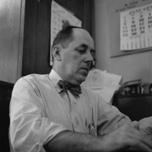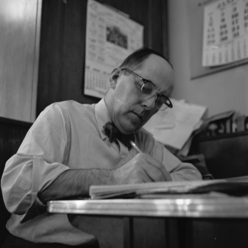 Candid photograph of Paul Estep at Walters Restaurant taken in February 1956. Paul operated a shoe repair shop in Mt. Jackson at the time of this photograph.