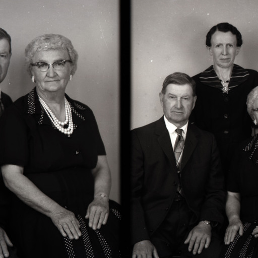 On the right is the same unidentified couple with an unidentified woman standing behind them.