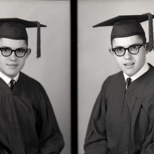The image on the left has a mark at the top where the photographer noted which of the two images he planned to…