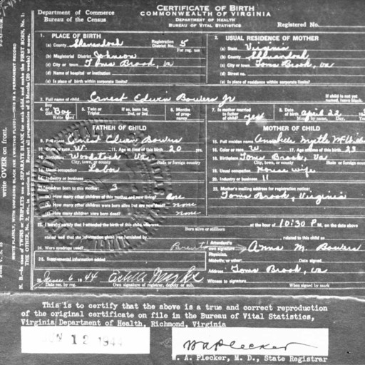 Ernest Edmond Bowers, Jr.' s Birth Certificate