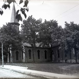 This church was located on the corner of Church and Locust Streets. The building at the far left of photo is…