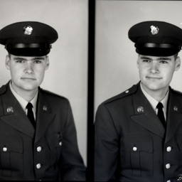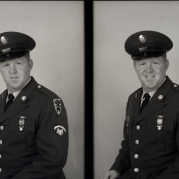 Photo of two separate portrait photograph of an unidentified man wearing a U.S. Army uniform and a beret.