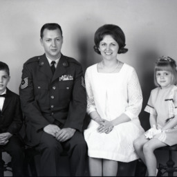Photo of two separate photographs of Martin Ritenour (left)in his U.S. Army uniform and seated beside his father, Chester F. Ritenour. His mother, Mabel (Shiley) Ritenour, is standing behind the two men.