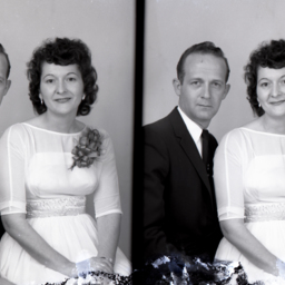Photograph of Richard Miller and his new bride, Diana Sue (Comer) Miller (later, Zirkle) on their wedding day.