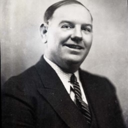 Portrait photograph of an unidentified man wearing a suit and striped tie.