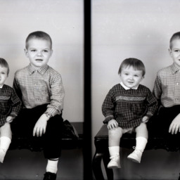 Photo of two separate photographs of the Stephens siblings.