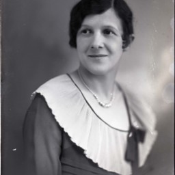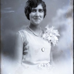 On the right is a portrait photograph of an unidentified girl with a bow in her short curly…