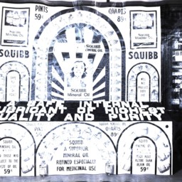 Photograph of an advertisement for Squibb Mineral Oil, a product advertised to be "a safe internal lubricant of highest quality and purity".