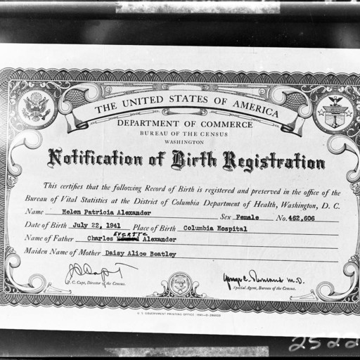 Photograph of a Maryland marriage license attesting that Charles "Edward" Alexander from Shelby, North Carolina, and Daisy Alice Beatley from Virginia (but living in Washington D.C.), were married in Mt. Rainier, Maryland, on January 29, 1941.