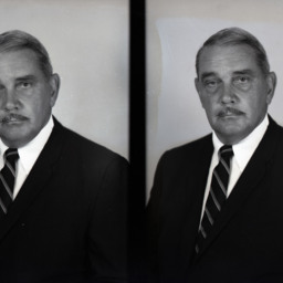 Photo of two separate portrait photographs of William Allen with a mustache and wearing a suit and striped tie.