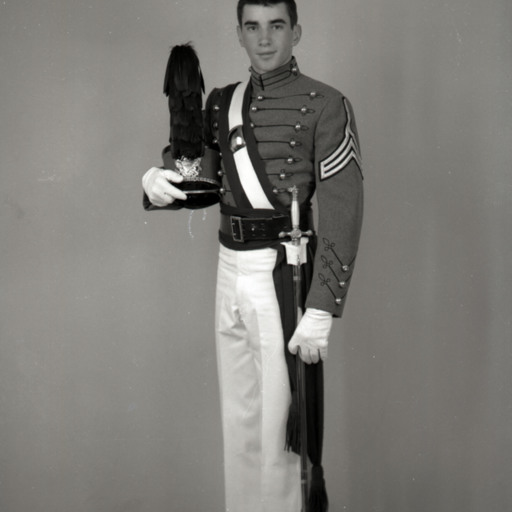 Photograph of William "Billy" Bland Allen, III, of Woodstock, standing in his cadet uniform at Massanutten Military Academy (MMA).
