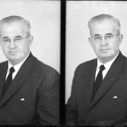 Photo of two separate portrait photographs of Frank Linwood Bashaw, Jr., wearing a suit and tie.