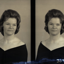 Photo of two separate portrait photographs of Paulette V. (Silcott) Bowers as a young woman with short styled hair.