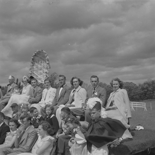Group photograph of part of the Triplett May Day Court at the Triplett School May Day celebration on May 13, 1952.