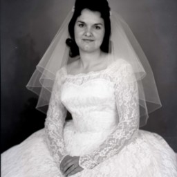 Photograph of Serena Shirley (Collins) Click posed in her bridal gown and veil.