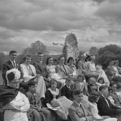 Group photograph of attendees of the Triplett School May Day celebration on May 13, 1952.