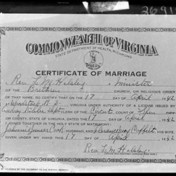 Tags: Certificates, Coffelt, Cook, Marriage, Shenandoah County, Virginia