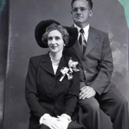 Photograph of Everette Leake, seated with his wife, Shirley E. (Dellinger) Leake.