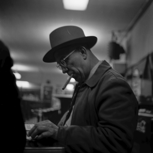 Candid photograph of Wilbur Craig at Walters Restaurant taken in February 1956.