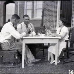 The man in the center of the photograph facing the photographer is Burgess Nelson.