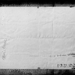 Photograph of the back side of a business document on which is written in pencil, the name, "Mattie Glaize", and three payment amounts with dates in the 1939 and 1940 timeframe.