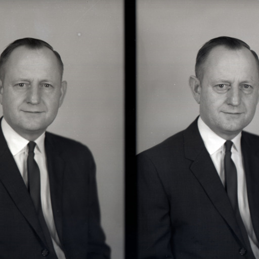 Photo of two separate portrait photographs of Lee Clarence Gochenour wearing a suit and tie.