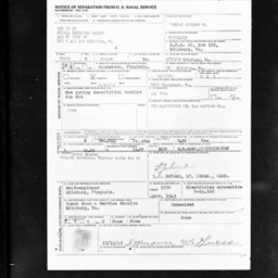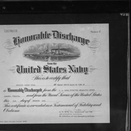 Photograph of the document certifying that Seaman Second Class Seymoure Walton Guess was honorably discharged from the Navy in Shelton, Virginia, on December 15, 1945.