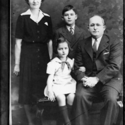 Photo of a framed photograph of Raymon and Edna (Hoover) Tamkin with their two children, Lewis Donald "Don" (standing) and daughter, Reba Marie (Tamkin) Smith (seated in front).