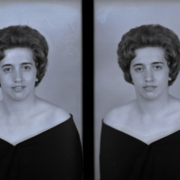 Photo of two separate portrait photographs of Janet Laverne (Cave) Hoover as a young woman with short styled hair.
