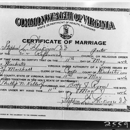 Tags: Certificates, Keller, Marriage, Ryan, Shenandoah County, Virginia