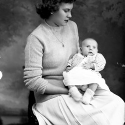 Photograph of Phyllis (Trimble) Morris with her daughter, Tommie Sue Morris, as a baby in her lap.