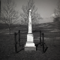 Photograph of the monument commemorating the unjust execution of Captain George W. Summers and Sergeant Newton Koontz Company D 7th Virginia Cavalry on June 27, 1865, by order of Union Lt. Col. Huzzy.