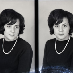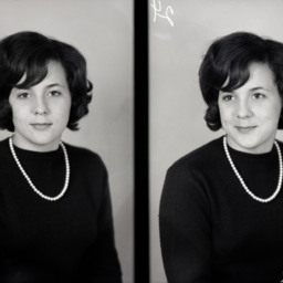 On the left is a portrait photograph of an unidentified young woman with short hair and bangs.