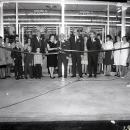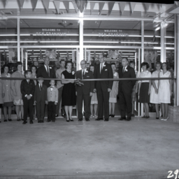 Identified are Louise Garman (center, with scissors) and her husband, Donald Garman (beside her). The couple owned the Ben Franklin Store in Woodstock for…