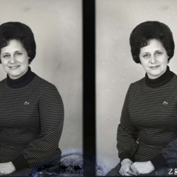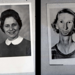 Photo of two separate portrait photographs of Nellie (Lantz) Long.
