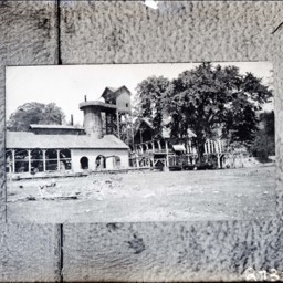 Photo of a photograph of buildings that were part of the Liberty Iron Furnace property.