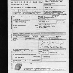 Photograph of the form titled, "Notice of the Separation From U.S. Naval Service" for Edward Reilly Lonergan, dated 4 October 1945. He was a Storekeeper First Class when he was discharged.