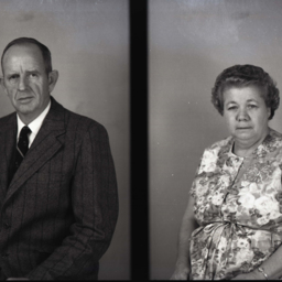 Photo of two separate individual portrait photographs of Clarence and Virginia Lutz.