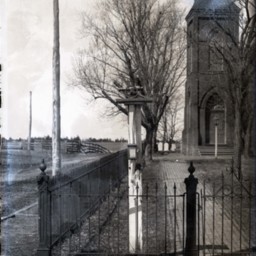 The post was struck by an artillery shell during the battle of New Market. The post still stands on Congress Street.