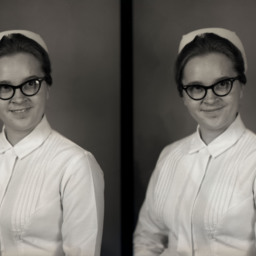 Both were nurses and are seen here wearing their uniforms and nurses caps.