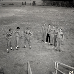 Photograph of eight unidentified Central High School football players from the 1964 season.