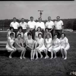 Photograph of a group of school employees and their spouses pictured at the Madison District Park in Edinburg Virginia.