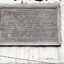 Two unidentified cadets from Massanutten Military Academy (MMA) are standing on either side of the "Roll of Honor" plaque at the entrance to the Memorial Gymnasium on campus.