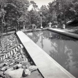 Postcard with an image of the swimming pool at Camp Strawderman which is an all girls camp located near Columbia Furnace in Shenandoah County Virginia.