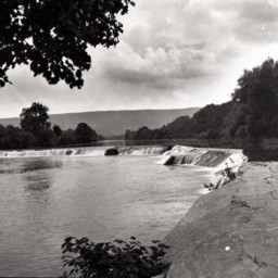 Photo of a photograph of Stonewall Dam near Pugh's Run.