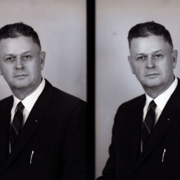 Photo of two separate portrait photographs of Elmer R. Reedy in a suit and tie.