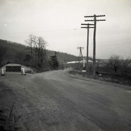 View looking across U.S. Route 11 at a two-story farmhouse and outbuildings located just south of Mount Jackson, on Rude's Hill near Caverns Road.