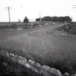 Photograph of an unidentified corner where a dirt road meets another dirt road in the country.