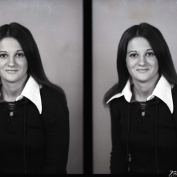 Photo of two separate portrait photographs of Debbie Kay (Kelly) Rosen as a young woman with long hair.