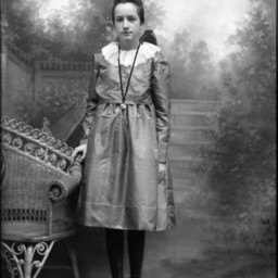 Nellie (Borden) Wisman of Toms Brook is standing by one of her two daughters, probably Anna Elizabeth (Wisman) Rosenberger, who is perched on a studio column..
